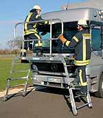 Die Rettungsplattform dient zur Sicherheit der Einsatzkräfte bei der Rettung verunglückter Personen aus einem Lkw- Führerhaus. Das Gerät ist auch als Arbeitsplattform bei Brand-, Rettungs-, und Katastropheneinsätzen verwendbar.